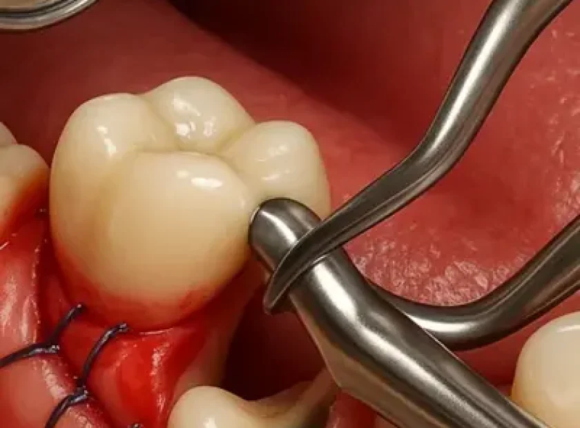 جراح دهان پس از بیحسی موضعی، برشی کوچک در لثه ایجاد کرده و دندان را بدون آسیب به استخوان خارج میکند. دوران نقاهت معمولاً ۳ تا ۷ روز است و با رعایت بهداشت دهان و استفاده از پانسمان، التیام لثه سریعتر صورت میگیرد.