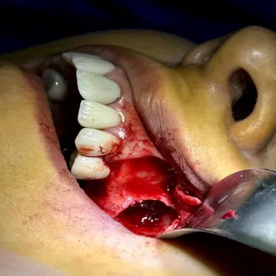 این جراحی توسط جراح فک و صورت یا متخصص جراحی دهان انجام میگیرد و با بیحسی موضعی شروع میشود تا بیمار در طول عمل احساس درد نداشته باشد.